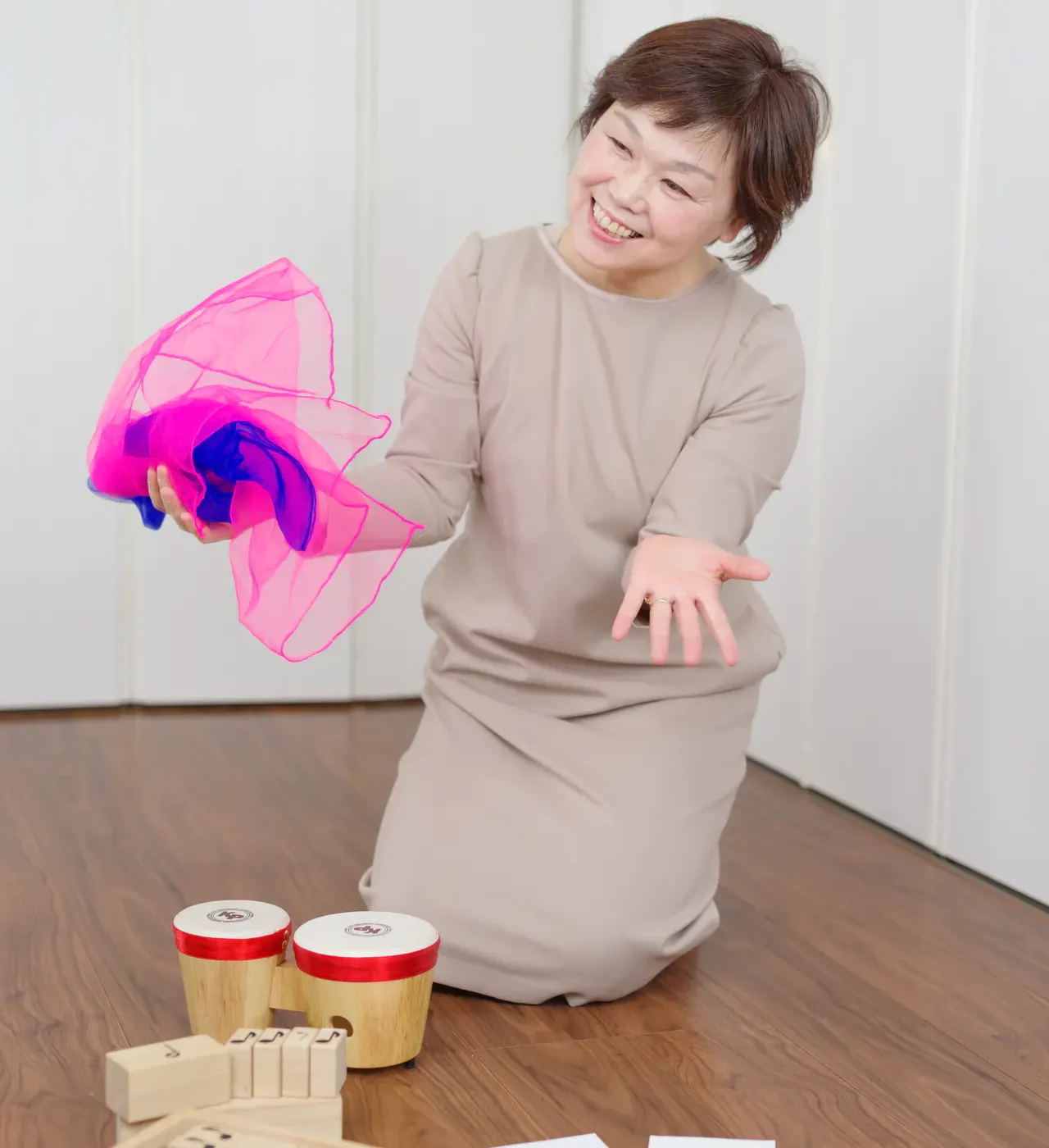 レッスンの中では親子スキンシップや音楽遊び、楽器体験、絵本読み聞かせ、知育など楽しく過ごせる内容がいっぱい。赤ちゃんは、まだ言葉がでなくても充分観察して感じています。「おもしろい」「もっとやりたい」から興味や関心が広がります。